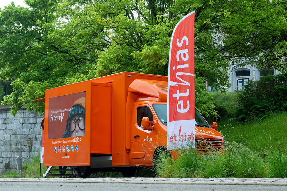 Saviez-vous que nous pouvons même nous rendre sur place dans notre Ethias Mobile Office ? Ce bureau mobile est équipé d'une connexion internet. Une équipe pluridisciplinaire de conseillers et d'inspecteurs font ensuite le déplacement pour aider nos clients (particuliers, collectivités, entreprises). Être proche quand vous avez besoin de nous, c'est ça Ethias !