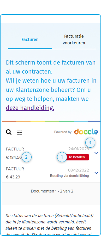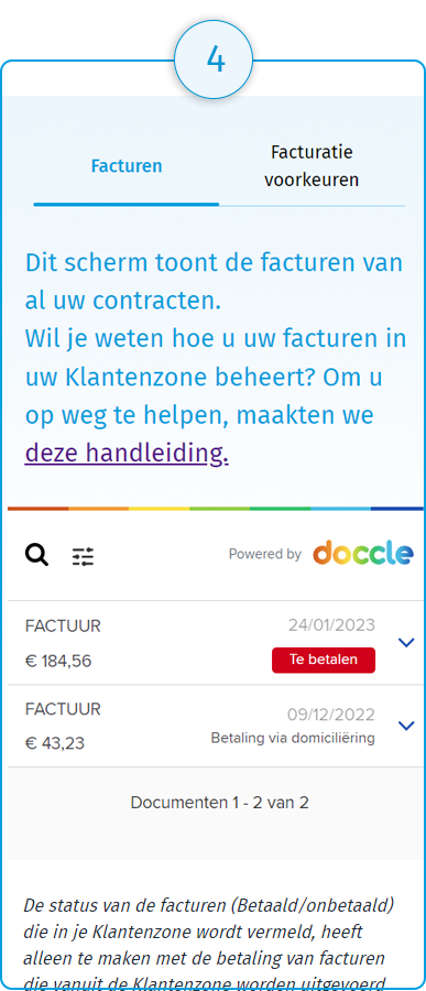 Jouw overzicht bevat naast facturen, ook eventuele domiciliëringen en credit nota’s.