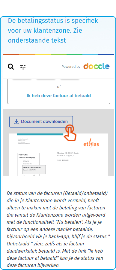 In je overzicht zie je in een oogopslag de facturen van al je Ethias-verzekeringen met: