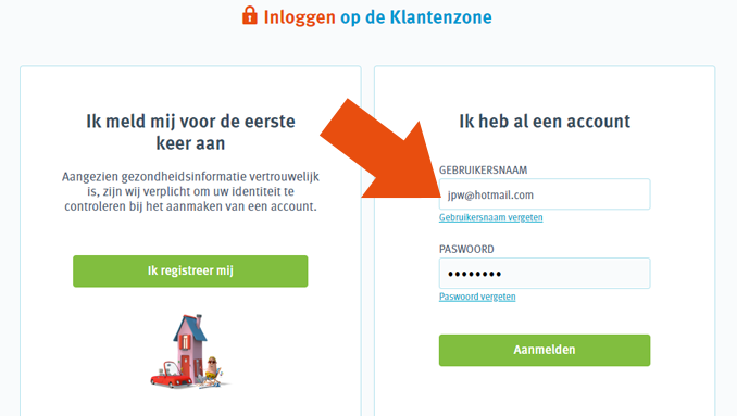De reden waarom u telkens terug op dezelfde pagina komt, is omdat u in het veld “Gebruikersnaam” opnieuw uw oude identificatienummer ingeeft. Maar voor de nieuwe Klantenzone is deze gebruikersnaam het door u gekozen e-mailadres.