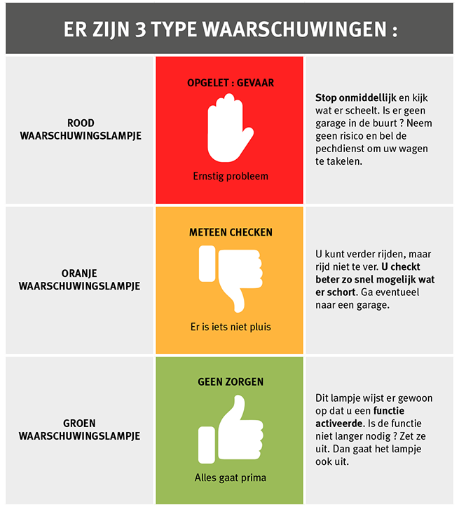 En dus ook van de controlelampjes. Handig voor een eerste snelle diagnose! Maar dan kent u wél best de 3 types waarschuwingen. Leest u even mee?