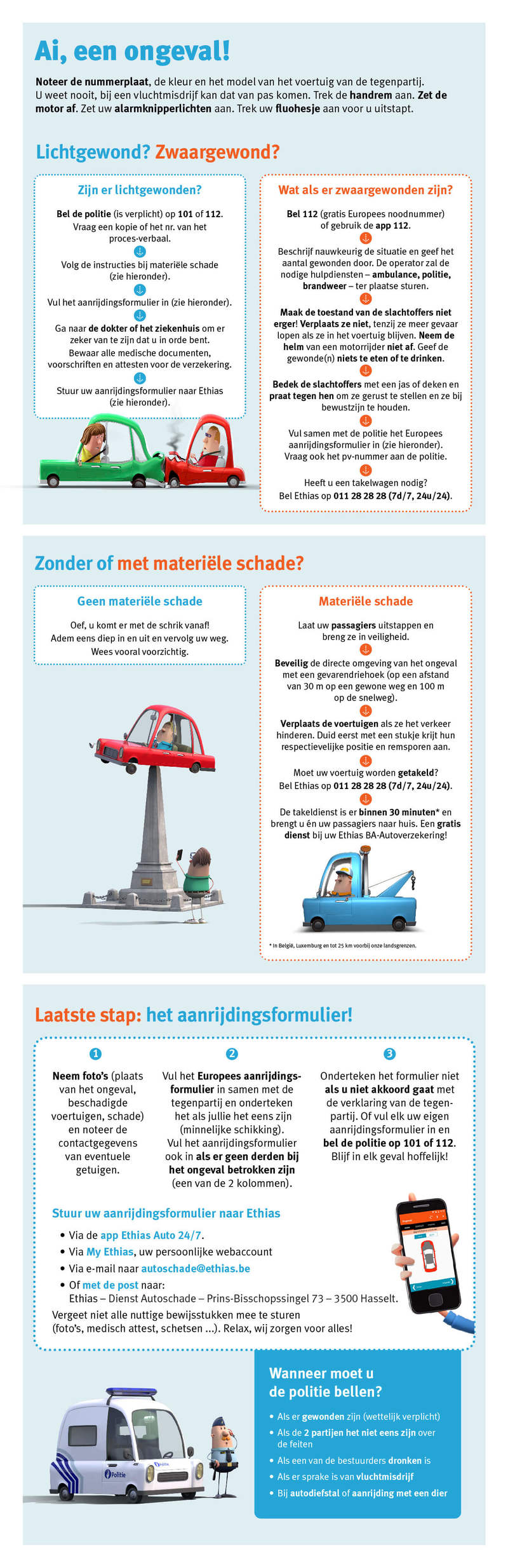 Ben ik verzekerd? Heb ik recht op een vervangvoertuig? Hoe en wanneer geef ik mijn schadegeval aan? Wat doe ik met het aanrijdingsformulier? Is er een franchise? …