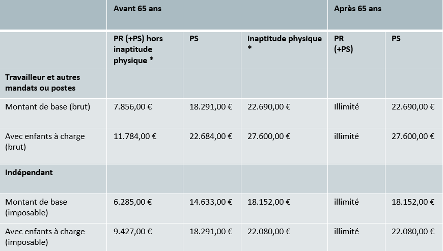Les pensionnés âgés de 65 ans qui reçoivent une pension de retraite peuvent en principe avoir un revenu complémentaire illimité (sans condition de carrière).