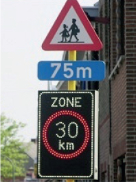 Elle est appropriée à des endroits où les conditions de circulation justifient une limitation de vitesse à 30km/h aux seuls moments d’entrées et de sorties de l’école et où les adaptations d’infrastructure ou d’organisation du trafic se limitent le plus souvent à la protection des usagers vulnérables.